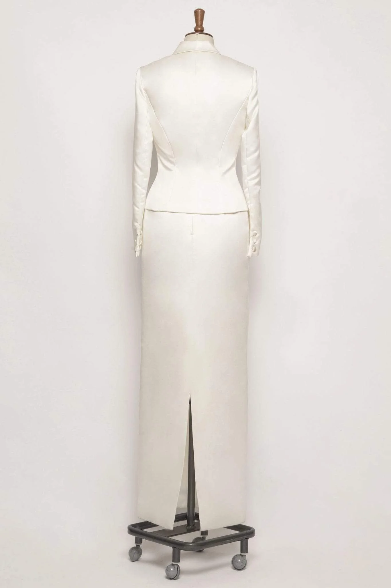 Peach Duchess Satin Halter Gown with Full Tulle Skirt. An enchanting peach duchess satin halter gown, perfect for a fairytale princess. This stunning dress features an elegant sweetheart halter neck bodice, paired with a voluminous full tulle skirt for a dramatic, whimsical look. The gown is beautifully finished with piped edges and functional covered buttons, adding a touch of classic sophistication. A matching replica bridesmaid dress is also available in age 6, creating a coordinated and magical look for your special day.